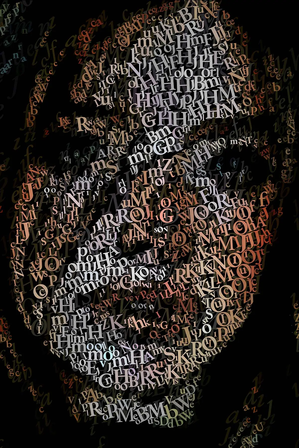 I apply colored letters one by one, creating surfaces dense with meaning and layered narratives.