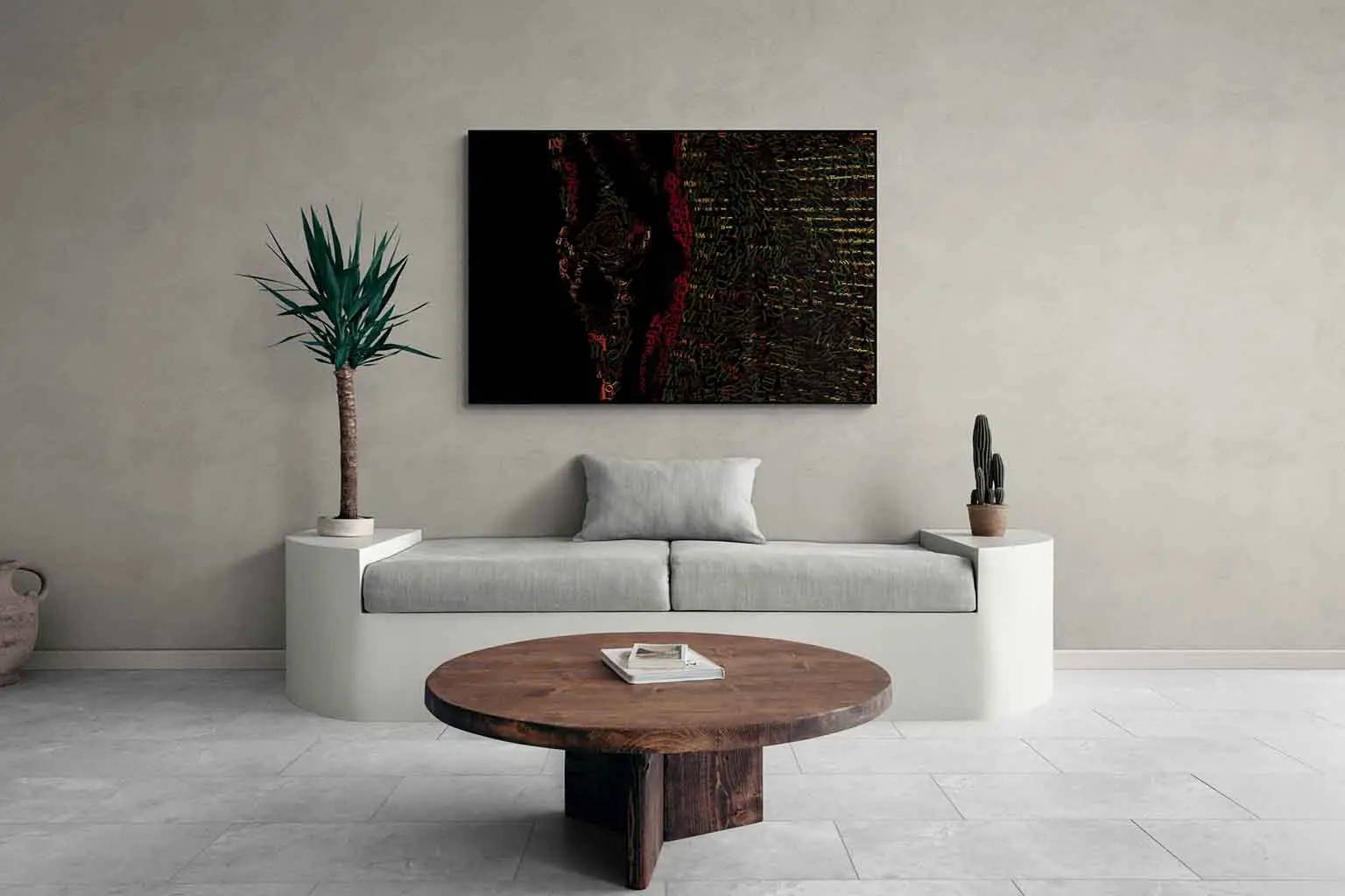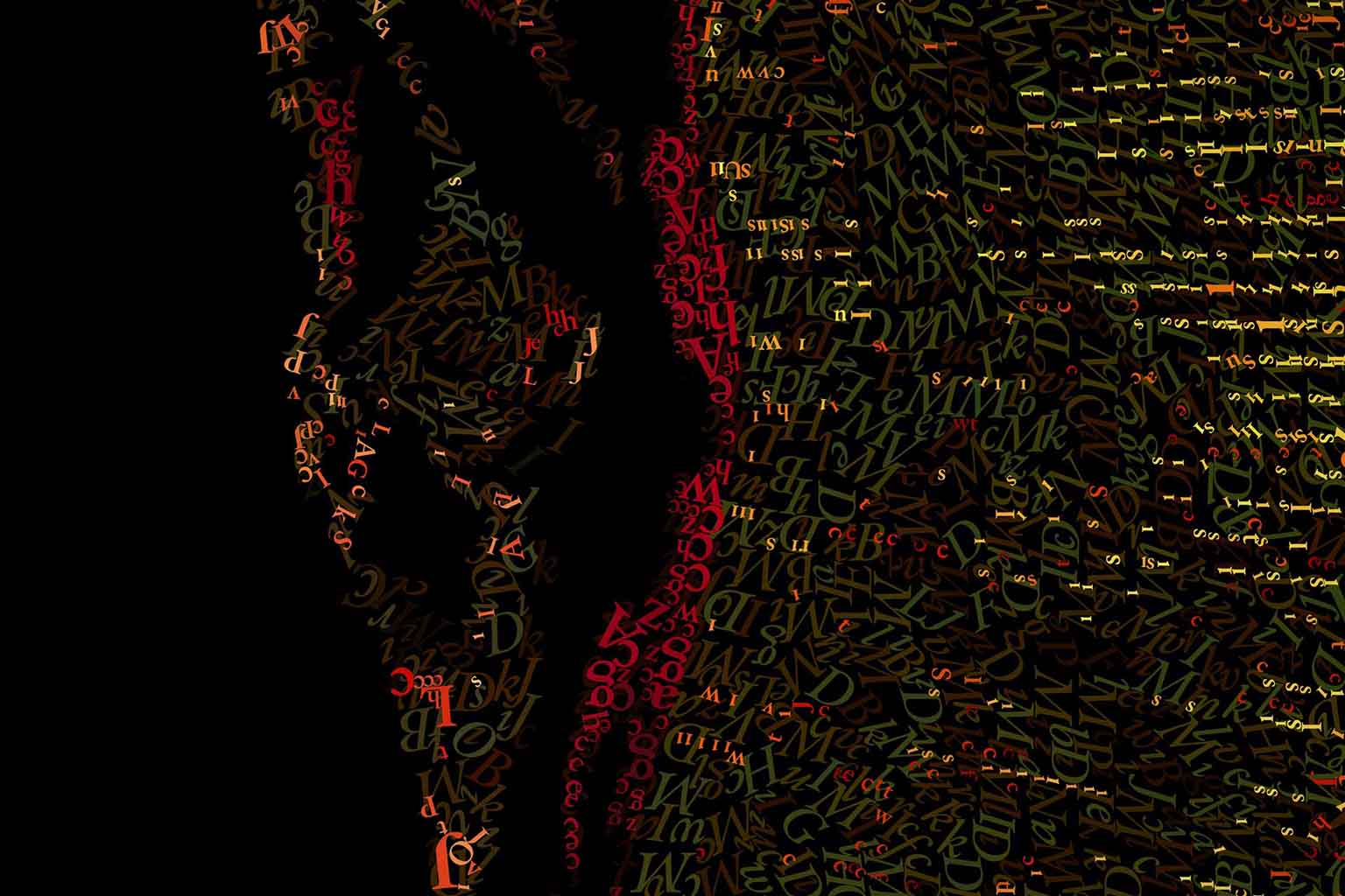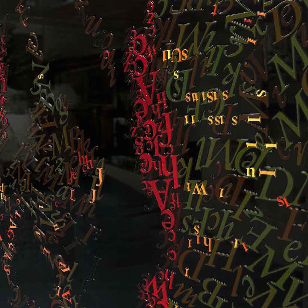I apply colored letters one by one, creating surfaces dense with meaning and layered narratives.